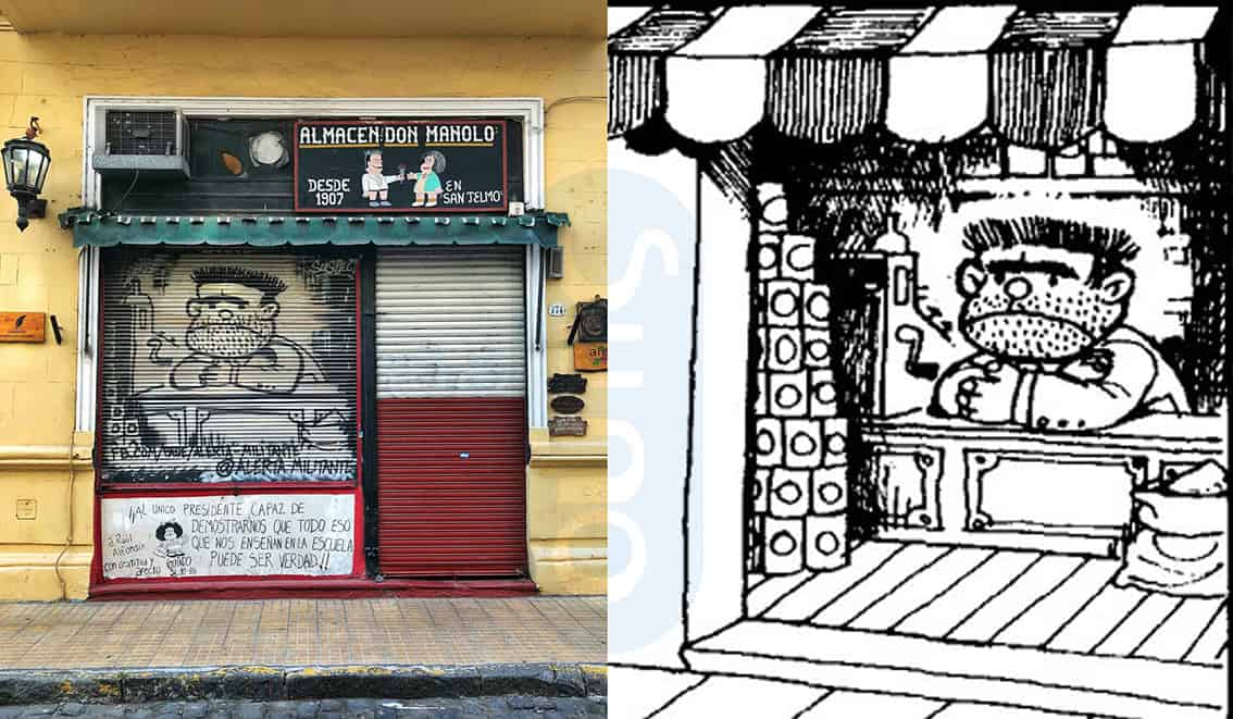 El Almacén de Don Manolo, al quale Quino si ispirò per creare il personaggio di Manolito, in Mafalda. Si trova in via Balcarce 772, Cdad. Autónoma de Buenos Aires, Argentina, proprio alle spalle di via Cile 371, casa dove “vive” Mafalda. La drogheri ha goduto di una certa fama grazie alle strisce di Mafalda. Era aperta dal 1907 ma ora ha definitivamente cessato l’attività.
